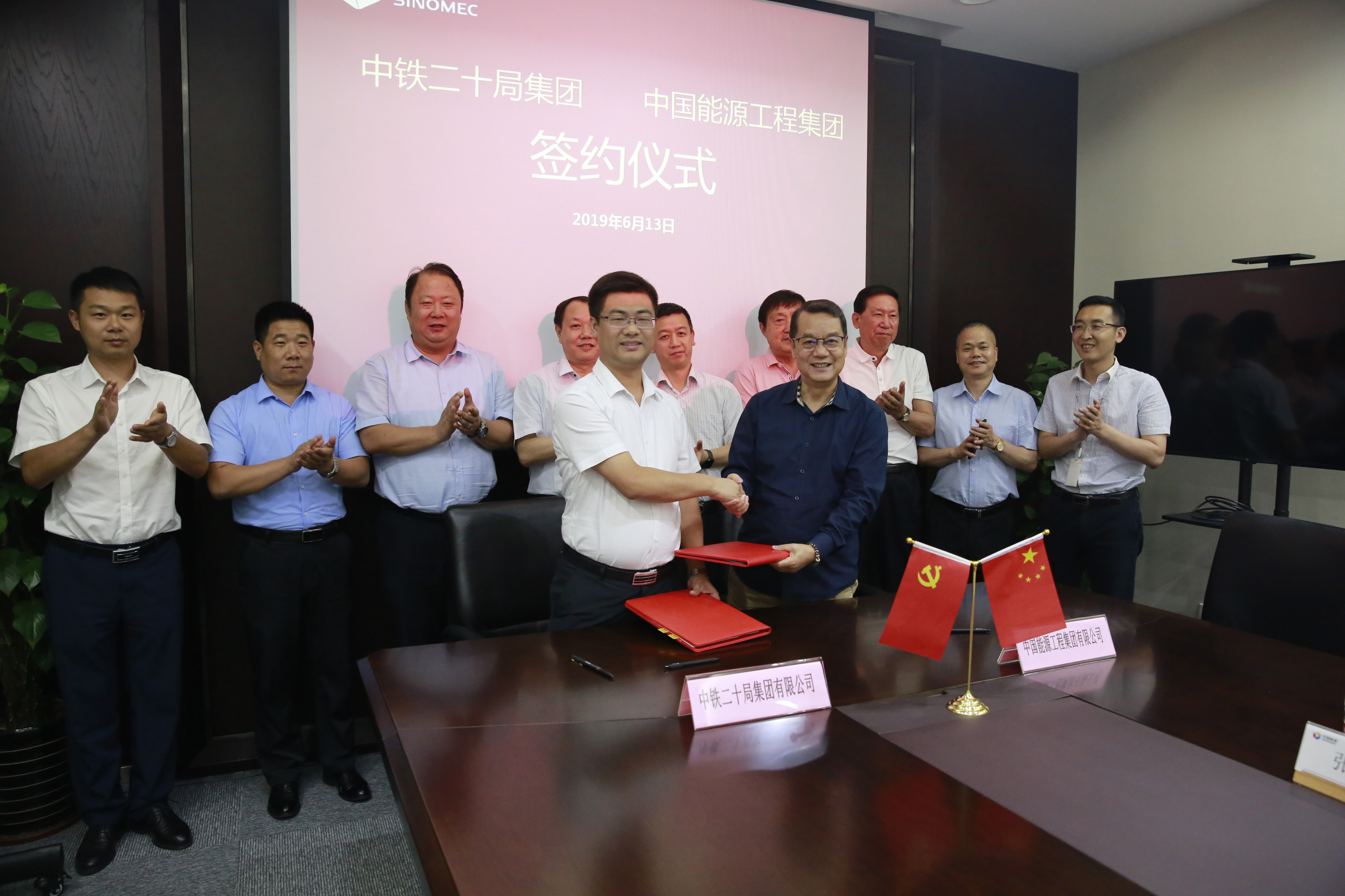 • 6月13日,中鐵二十局集團(tuán)有限公司總經(jīng)理助理兼華東工程指揮部指揮長白建偉,中鐵二十局集團(tuán)第三工程有限公司黨委書記、董事長任霄,黨委副書記、總經(jīng)理吳青華,副總經(jīng)理汪發(fā)安、范繼紅等領(lǐng)導(dǎo)蒞臨中國能源工程集團(tuán)考察交流并簽署戰(zhàn)略合作協(xié)議。中國能源工程集團(tuán)總經(jīng)理段玉林,副總經(jīng)理李楊等領(lǐng)導(dǎo)參加會議。