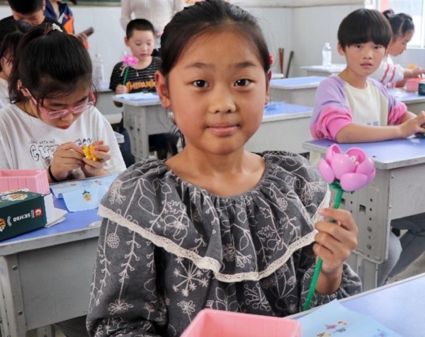 隨后,志愿者們還為同學(xué)們精心準(zhǔn)備了一堂“積木花”手工課。志愿者們說,孩子們是中國的未來、是社會主義接班人、是祖國的花朵,希望通過積木花的制作,把對孩子們的愛護(hù)傳遞給大家。