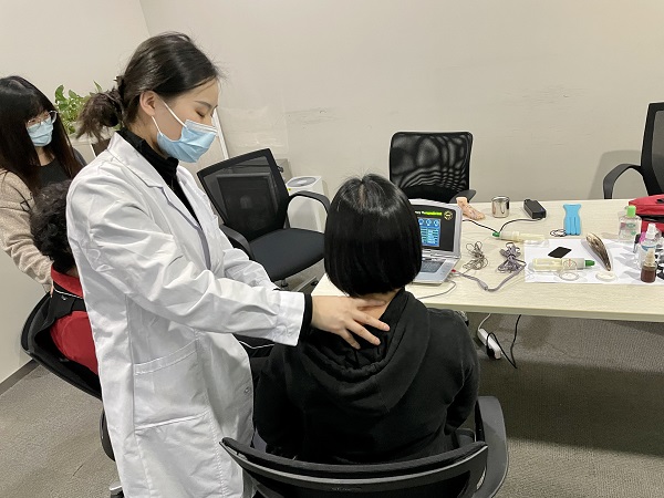 醫(yī)師為報(bào)名參加活動(dòng)的員工進(jìn)行了搭脈、面診、詢(xún)問(wèn)病史,并針對(duì)頸椎供血不足、寒濕性關(guān)節(jié)炎等常見(jiàn)勞損問(wèn)題提供了專(zhuān)業(yè)推拿、拔罐、艾灸、遠(yuǎn)紅外熱敷等專(zhuān)業(yè)調(diào)理,同時(shí)還在現(xiàn)場(chǎng)示范了一些易于掌握的穴位按摩和推拿手法,科普正確的疾病自我預(yù)防方案。